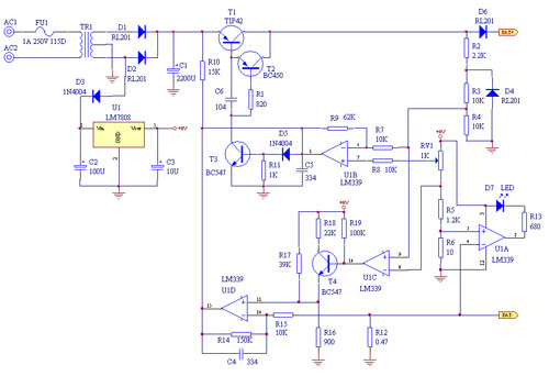 12v充電器電路圖-12v充電器原理圖解簡易12v充電器電路圖(一)充電過程分析:1 維護充電:當電池電壓較低時(可設定,本電路預設在9V以下),充