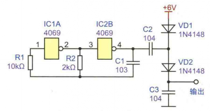基于門電路的倍壓電路設計介紹這里介紹一個利用門電路組成的倍壓升壓電路,可以為某些電子設備提供所需要的高壓工作電源。該電源雖然輸出電