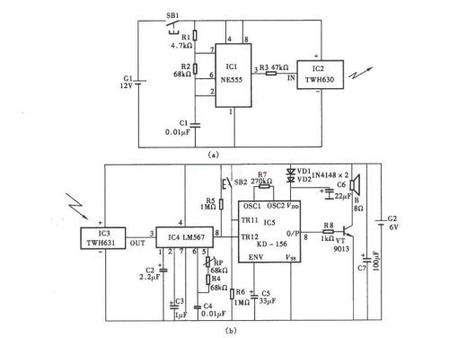 無線電遙控門鈴電路原理圖介紹本例介紹一種用TWH630 631遙控模塊制作無線電遙控叮咚門鈴,客人來訪時,按動門框上的門鈴按鍵,門鈴就會發出