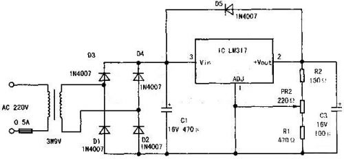 小型穩壓電源的設計和制作1 電路工作原理用三端可調正壓集成穩壓器LM317構成的穩壓電源電路如下圖所示。圖中220V的交流電經保險管送到變壓