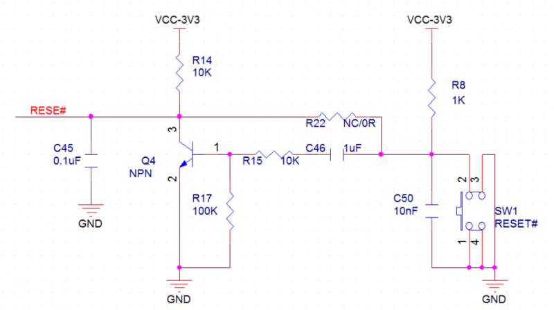 開關三極管的三種電路應用圖原理解析1:復位電路的應用。這個電路有效防止了 RESET 信號的按鍵機械抖動。工作原理:按鍵松開的過程,VCC-