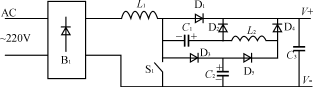 PFC主電路原理圖知識圖 PFC主電路原理圖如圖所示的無損吸收PFC主電路的原理圖。圖中B1為整流橋,L1為PFC升壓電感,D1為隔直二極管,S1為開