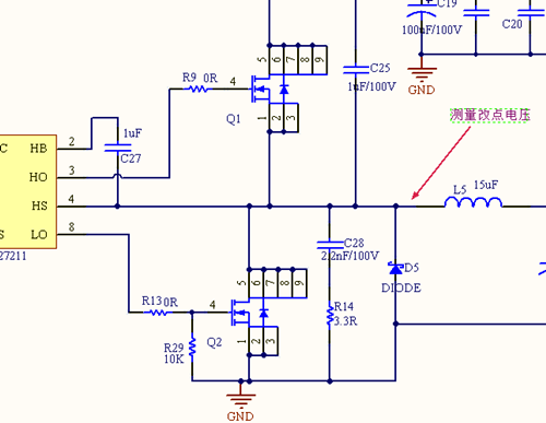 開關電源電感電壓波形過沖,下沖詳解以同步降壓電路例子來講解:測量電感左端的電壓波形如圖所示。很明顯可以看到電壓尖刺。那么為什么會產