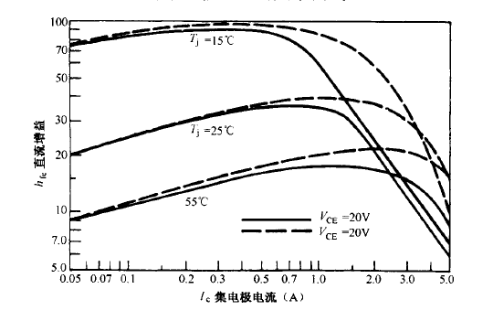 雙極型晶體管的直流增益曲線圖對于MOS管雙極型晶體管 ,由于電流增益隨輸出電流的上升急劇下降 ,當輸出電流顯著增加時, 其基極電流的