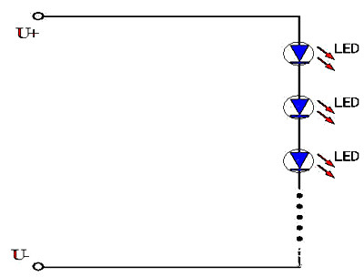 LED驅動的幾種連接方式圖文介紹LED驅動的連接方式一、串聯方式這種串聯連接的方式電路比較簡單,首尾連接在一起,LED工作時流過的電流一致