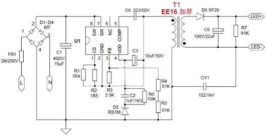 LED燈驅動電源電路圖根據驅動電路的輸出特性,白光LED閃光燈的驅動電路可分為恒壓型和恒流型;按電路工作原理,可以分為電感升壓電路和電荷