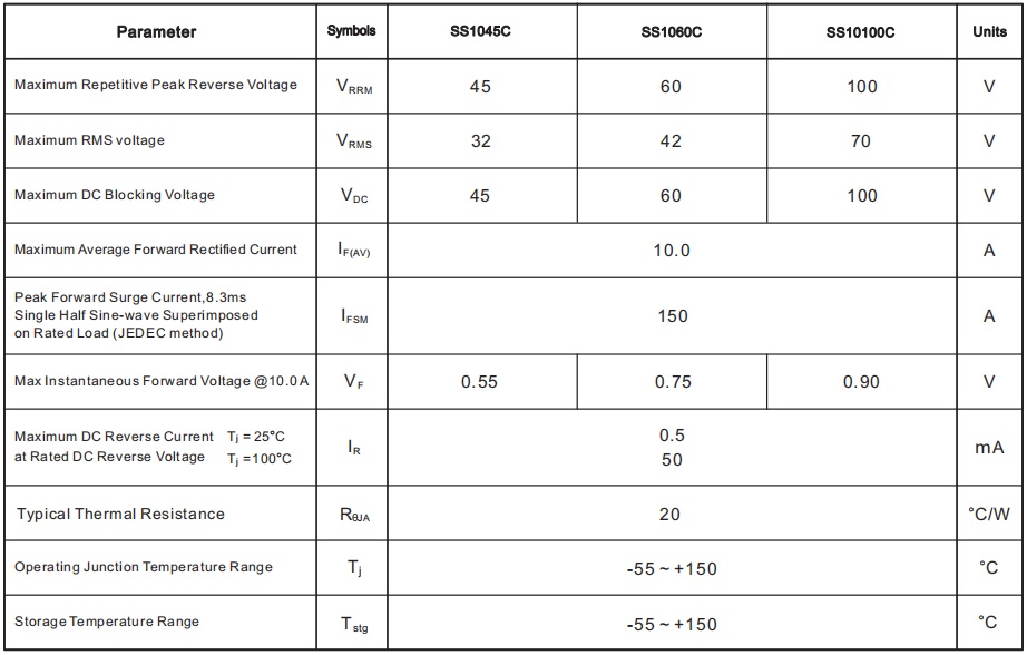 SS1045肖特基二極管,10A 45V,DO-214AB SMC封裝,SS1045參數規格書SS1045是貼片肖特基二極管,10A 45V,SS1045封裝是DO-214AB SMCSS1045 DO-2