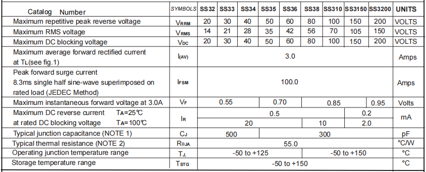 SS54肖特基二極管5A 40V,SMA SMB SMC封裝,SS54參數規格書SS54是貼片肖特基二極管5A 40V,SS54封裝有SMA,SMB,SMC多種封裝,其參數一致,封裝