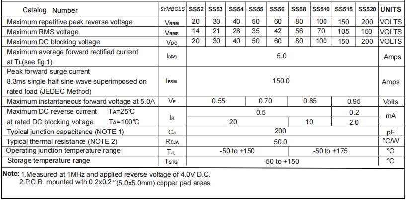 SS520肖特基二極管,5A 200V,SMA SMB SMC封裝參數規格書SS520是貼片肖特基二極管,5A 200V,SS520封裝有SMA,SMB,SMC多種封裝,其參數一致,封